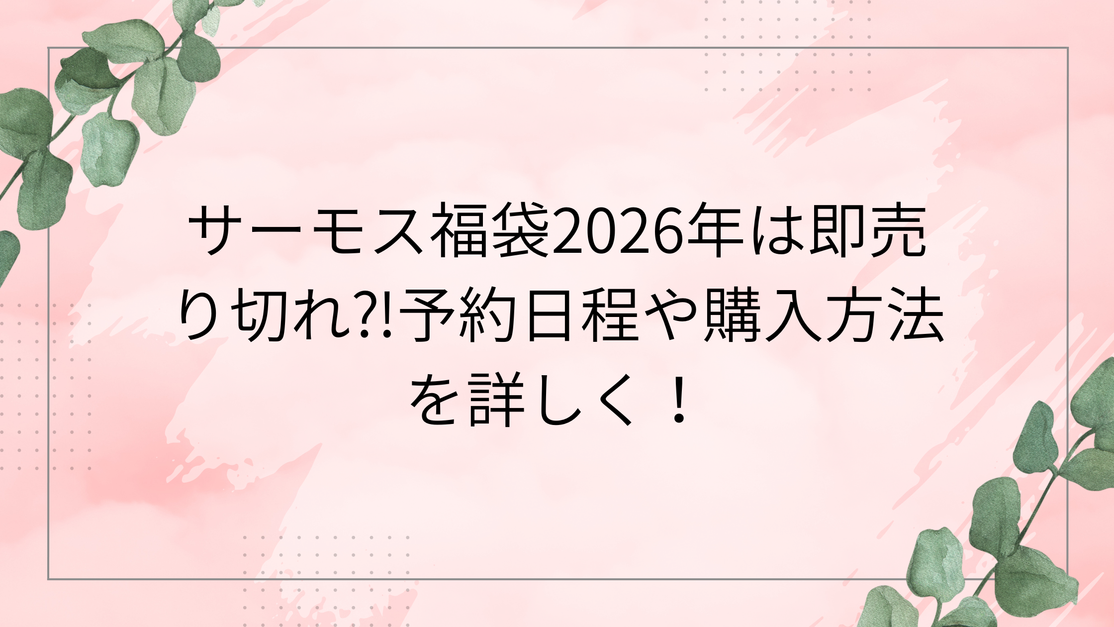 今回は、2026年のサーモス福袋の予約日程・購入方法・中身予想や口コミまで、