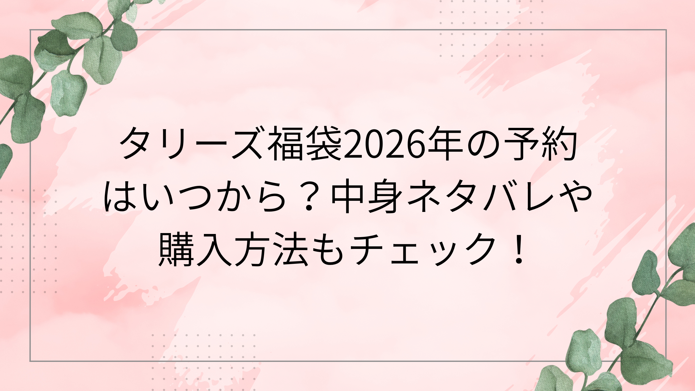 今回は、そんな「タリーズ福袋2026年」の予約日程や中身、購入方法などをまとめてご紹介します。