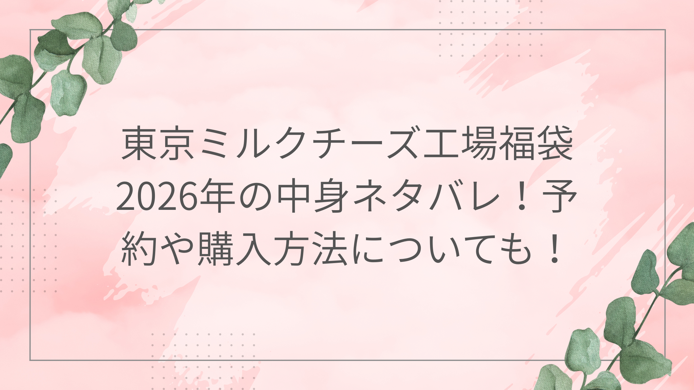 大人気スイーツブランド「東京ミルクチーズ工場」の2026年福袋について、予約や購入方法を中心にまとめてみました。