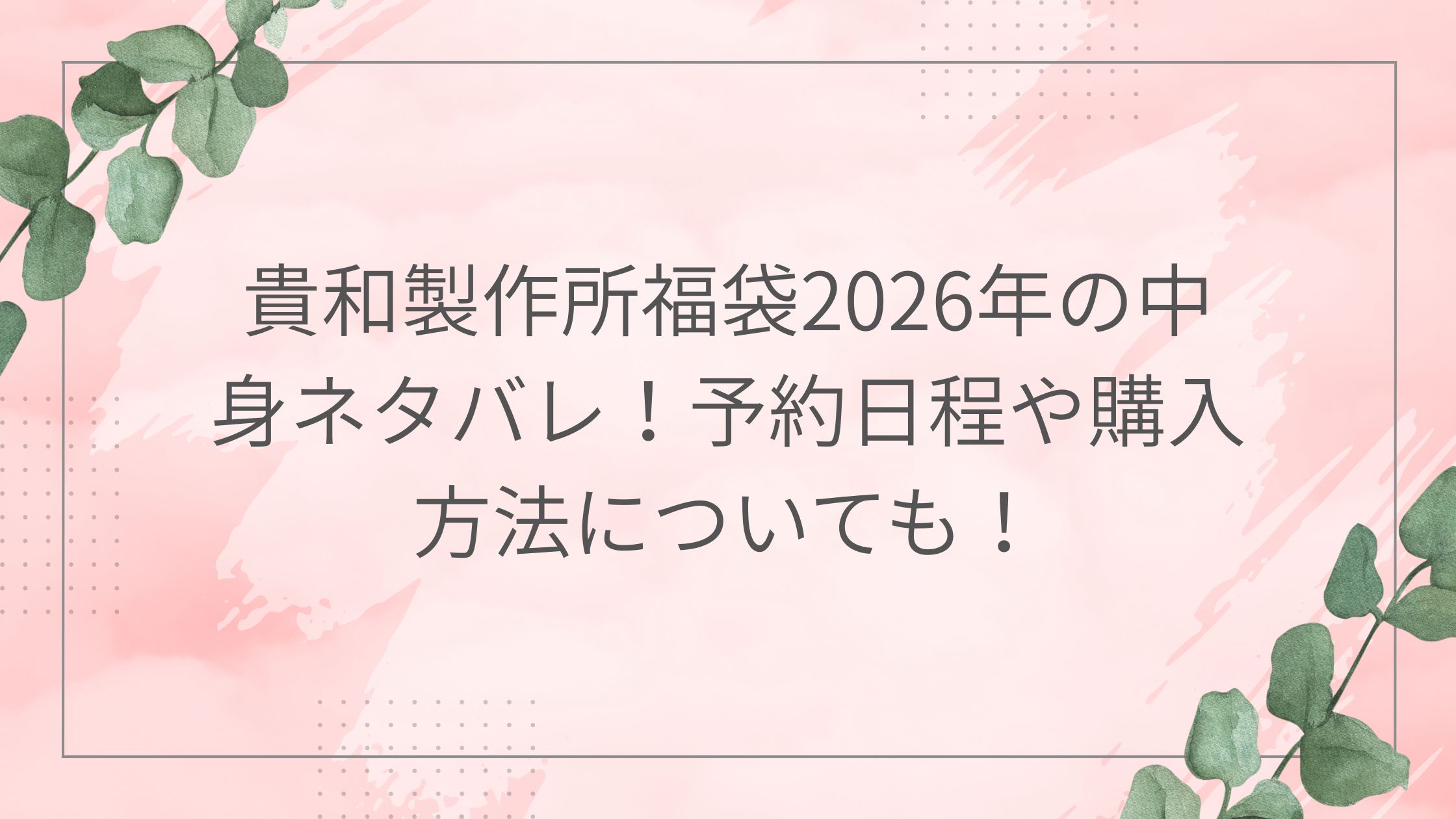 貴和製作所福袋2026年の中身ネタバレ!予約日程や購入方法についても!