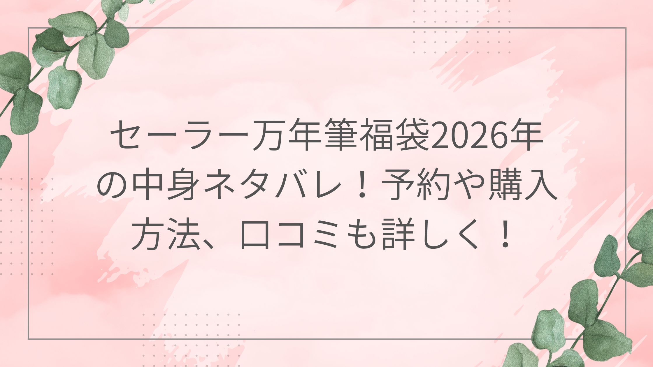 ここで分かる情報をチェックして、2026年のセーラー万年筆福袋をしっかりゲットしましょう!