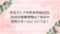 また、初売りは1月2日スタートの可能性が高く、食品中心の福袋や、生鮮食品・日用品の特売が並ぶかもしれません。