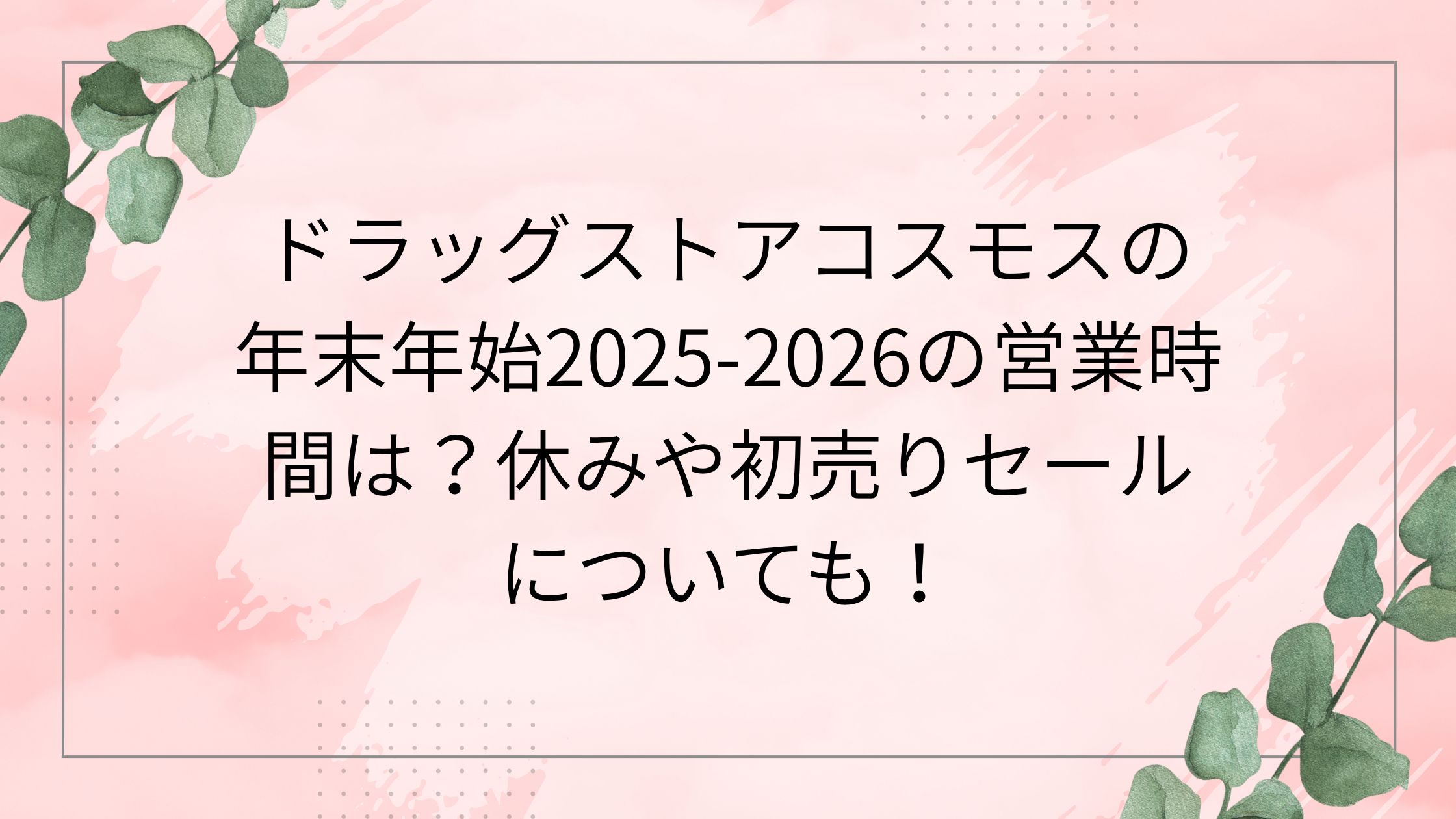今回の記事をまとめると、ドラッグストアコスモスの年末年始(2025-2026)は、例年と大きく変わらない流れになりそうだな、という印象です。
