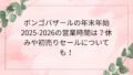年末年始の営業時間(予想)