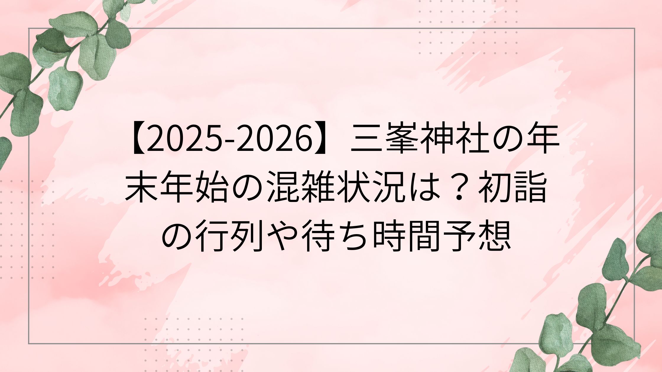 この記事では、2025-2026年の年末年始における三峯神社の混雑予想、待ち時間、アクセス情報、そして快適に参拝するためのポイントを詳しくお伝えします。