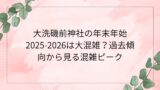 特に初めて初詣で訪れる方は、事前に混雑状況や待ち時間を把握しておくことが本当に大切だと実感しています。