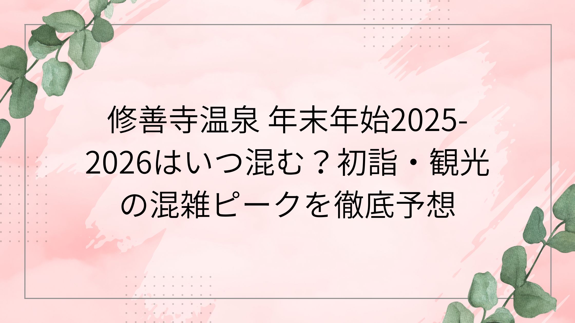 今回は、修善寺温泉の年末年始2025-2026における混雑状況を、例年の傾向や最新情報から徹底予想してみました。