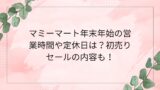 | 12月31日(水・大晦日) | 9:30〜17:00 | カウントダウンイベントなし・通常営業 |